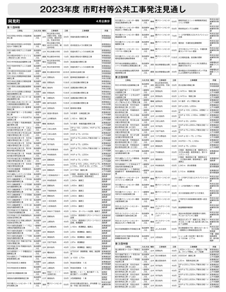阿見町 発注見通し(2023年4月公表)