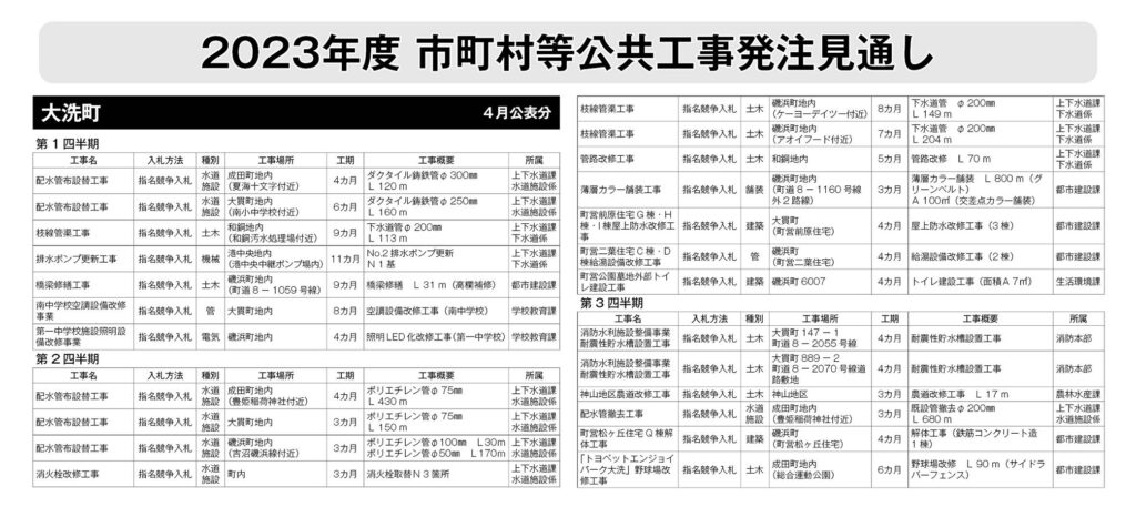 大洗町 発注見通し(2023年4月公表)