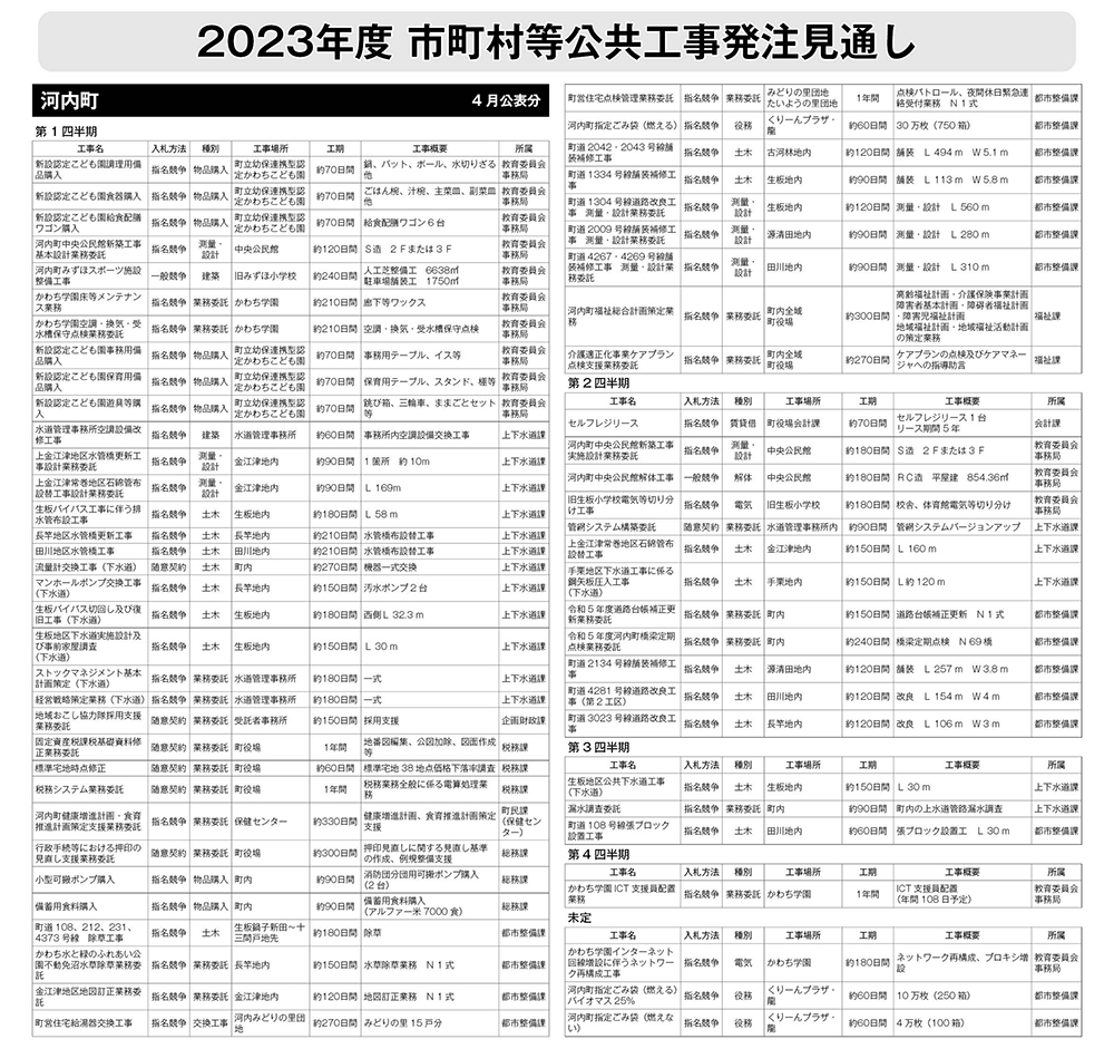 河内町 発注見通し(2023年4月公表)