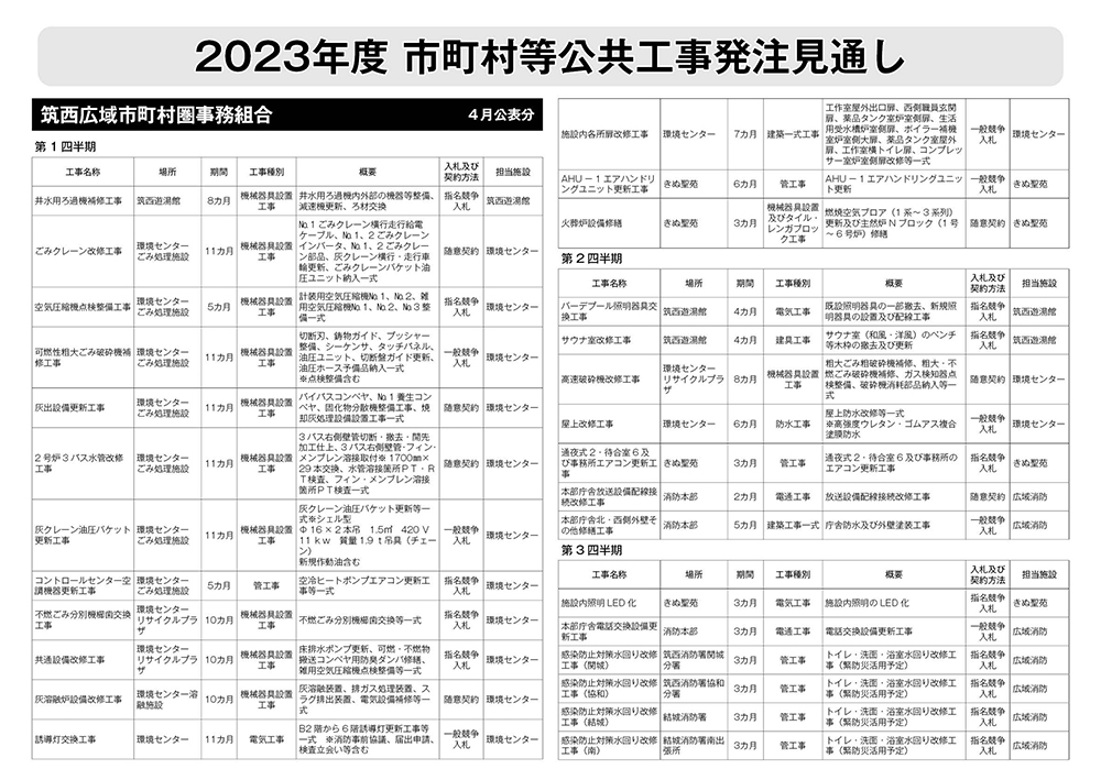 筑西広域市町村圏事務組合 発注見通し(2023年4月公表)