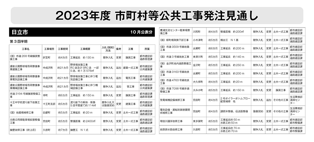 日立市 発注見通し(10月公表分)