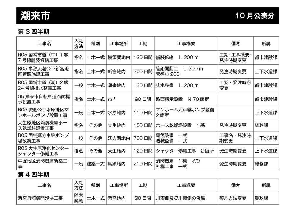 潮来市 発注見通し(10月公表分)