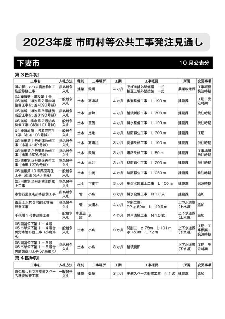 下妻市 発注見通し(10月公表分)