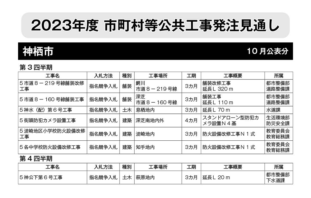 神栖市 発注見通し(10月公表分)