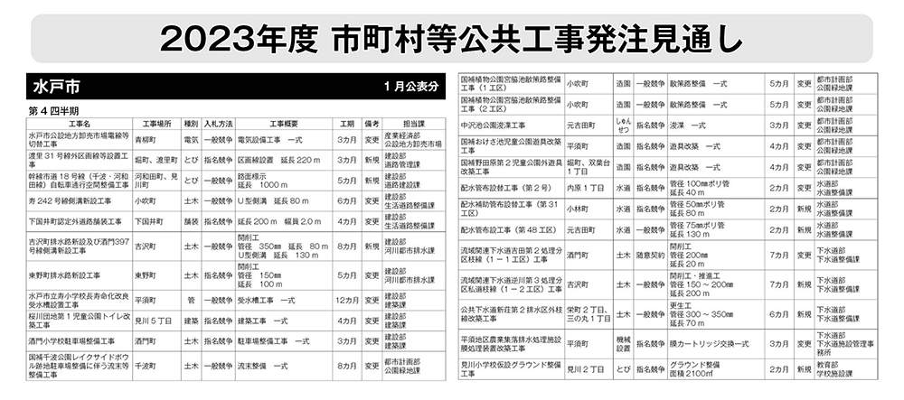 水戸市 発注見通し(1月公表分)
