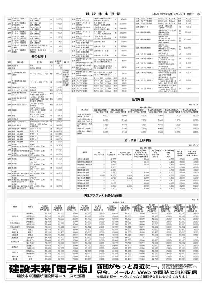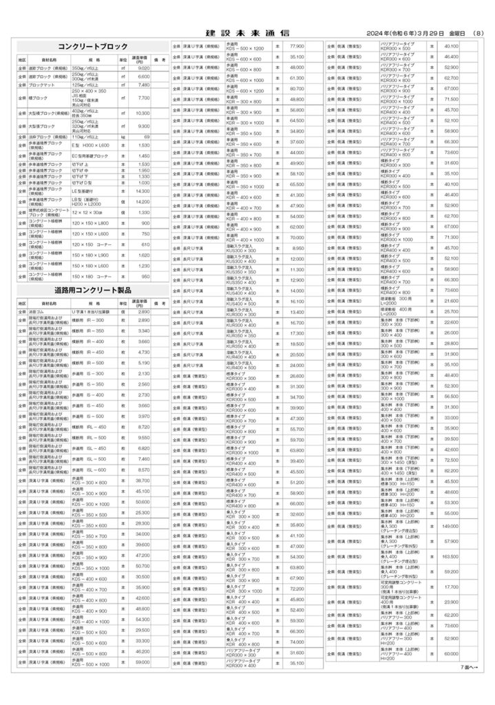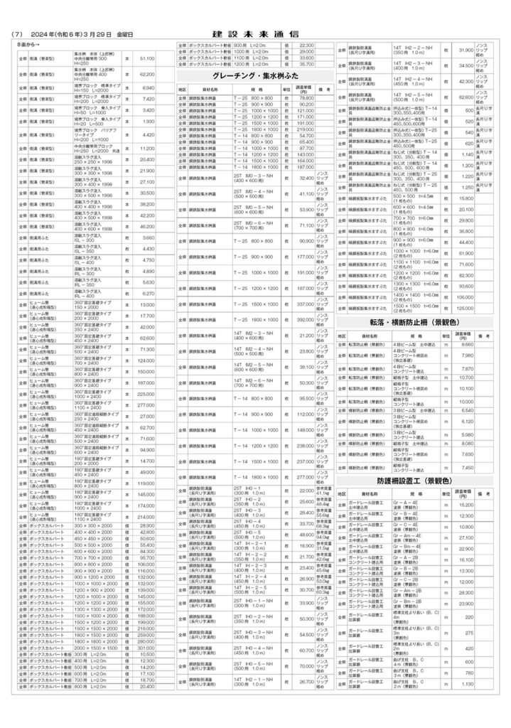 県土木部資材単価表(2024年4月1日改定)