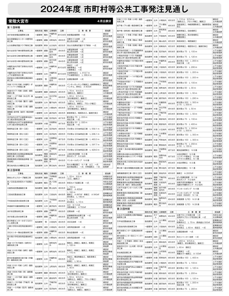 常陸大宮市発注見通し(2024年度4月公表)