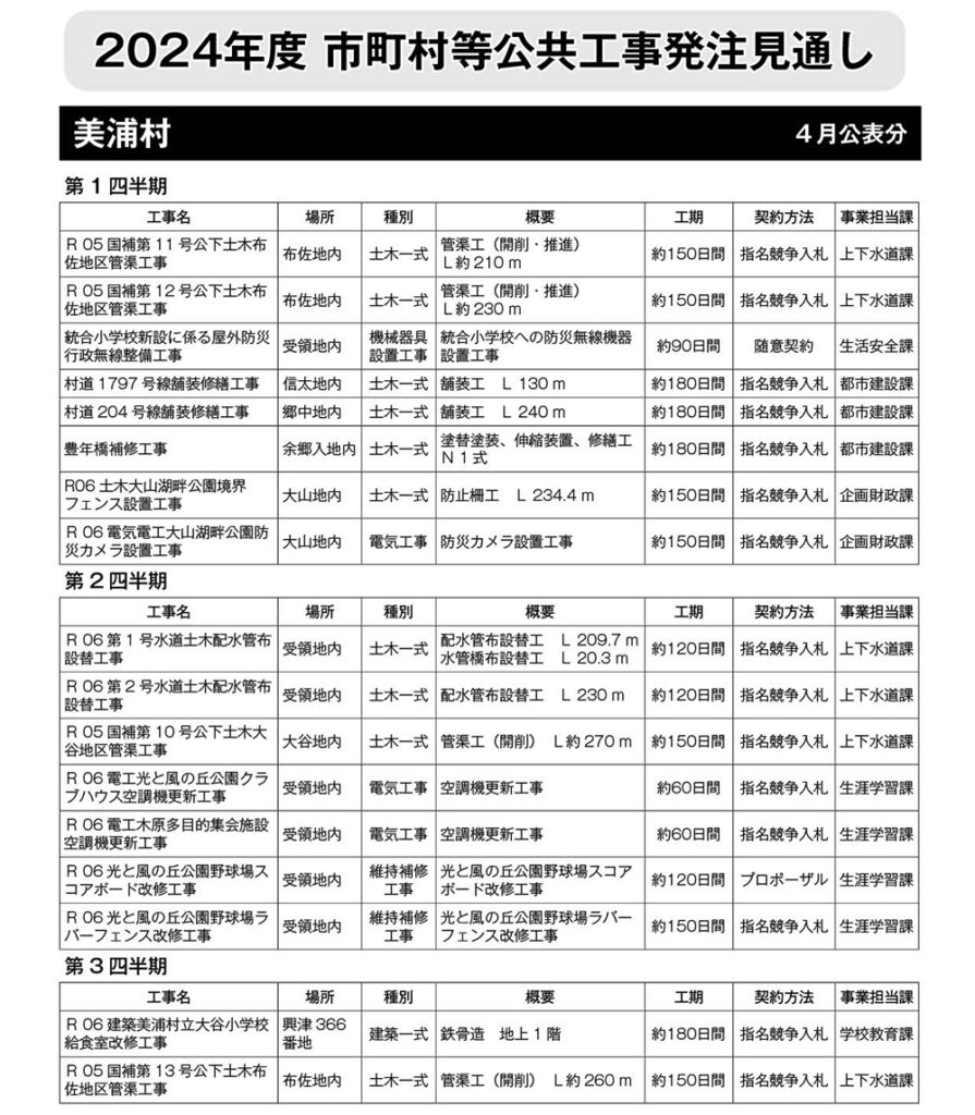 美浦村発注見通し(2024年度4月公表)