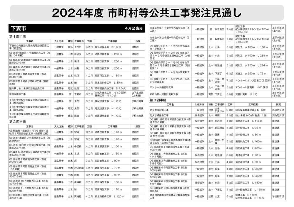 下妻市発注見通し(4月公表分)