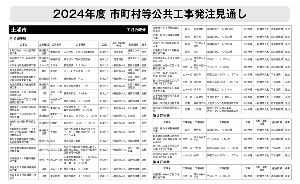 土浦市発注見通し(7月公表分)