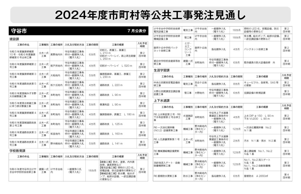 守谷市発注見通し(7月公表分)