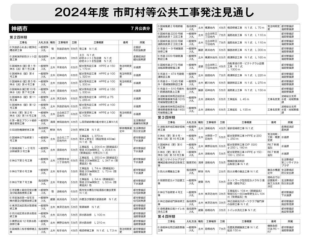 神栖市発注見通し(7月公表分)