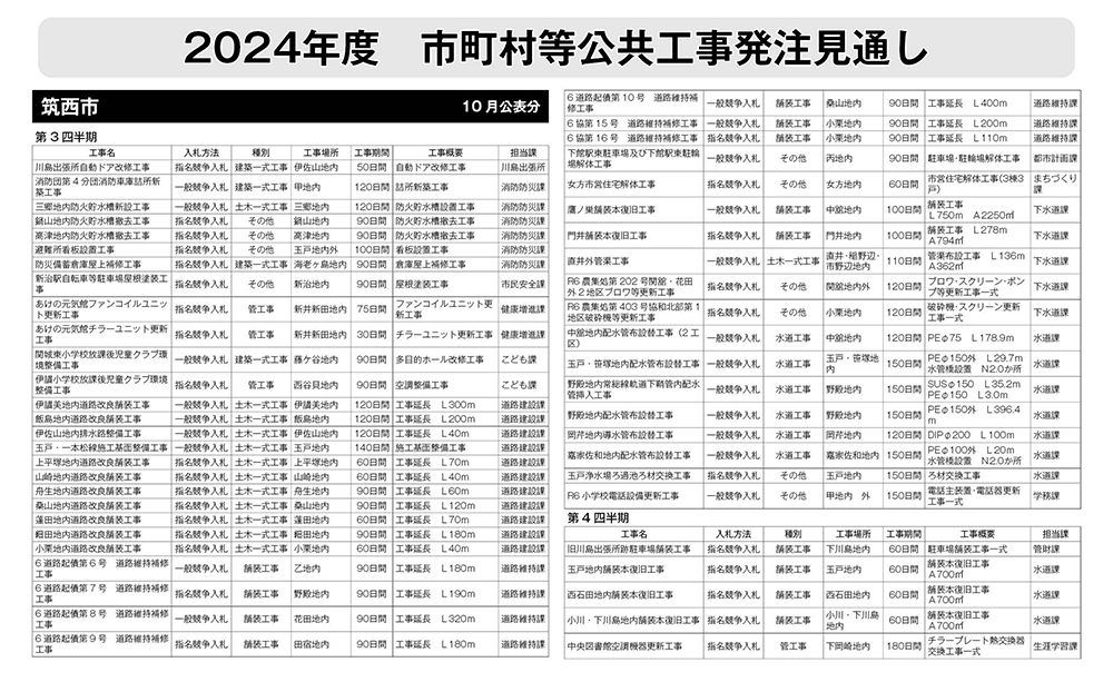 筑西市発注見通し(10月公表分)