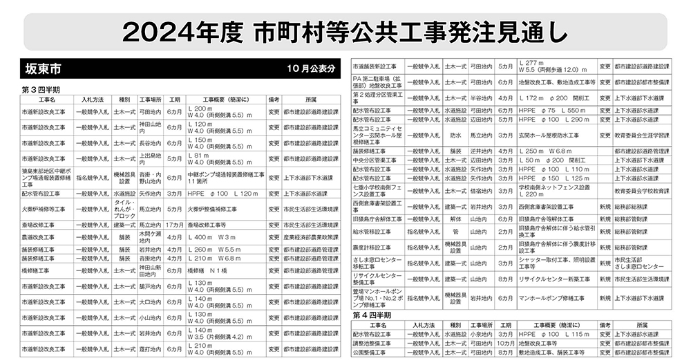 坂東市発注見通し(10月公表分)
