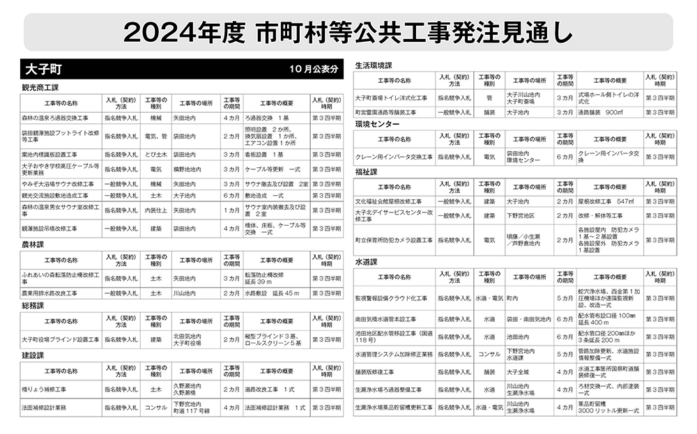 大子町発注見通し(10月公表分)