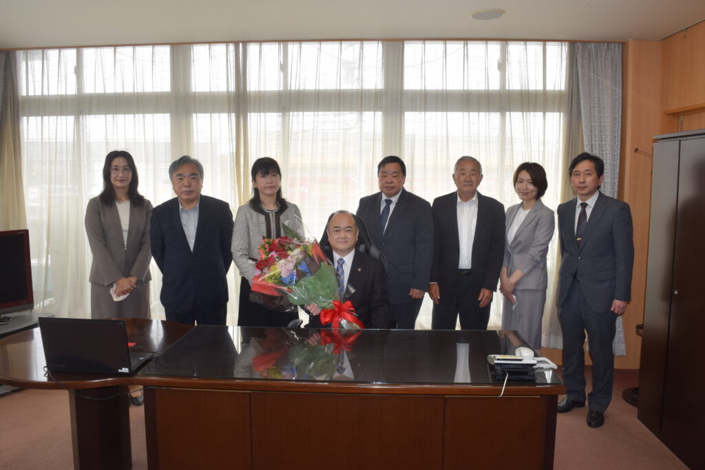 鹿嶋市の田口伸一市長が27日、初登庁を果たした。多くの職員や支援者に拍手で出迎えられる中、花束を受け取った。その後の記者会見では、歴史館整備事業について廃止を明言した。