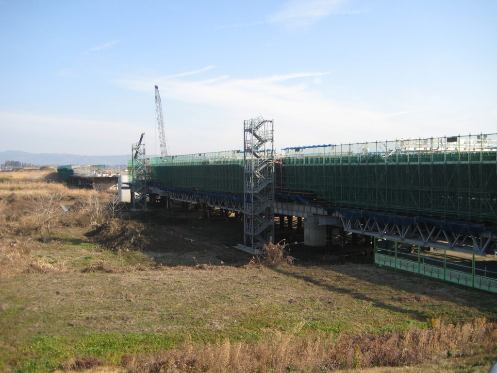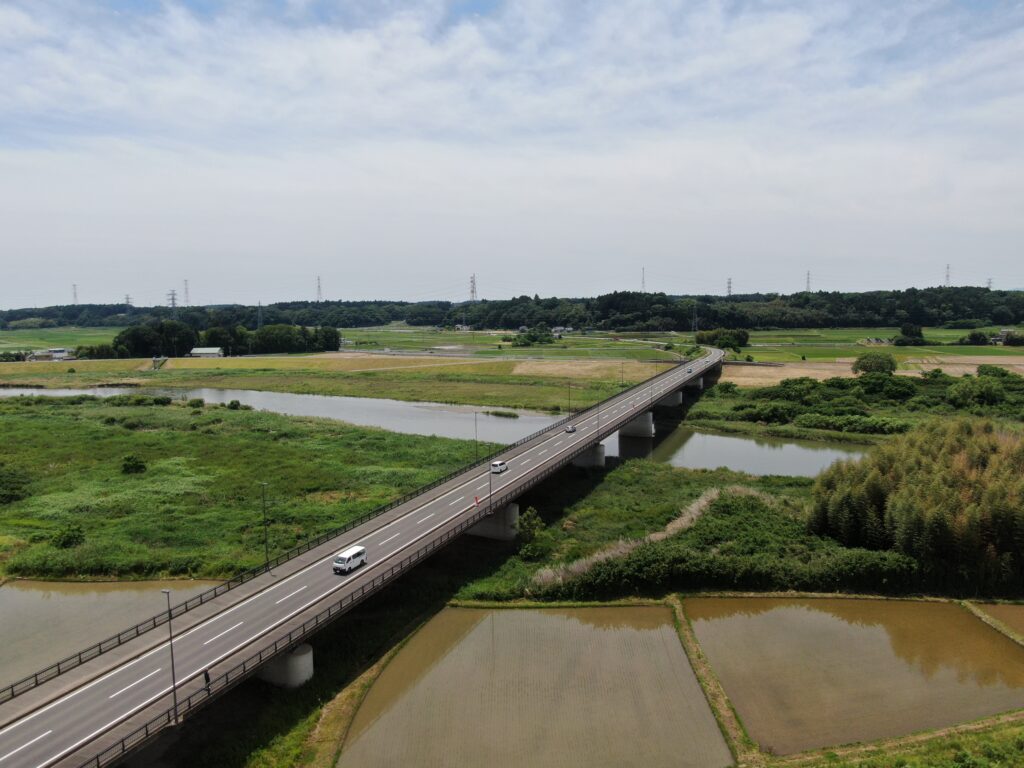 現地に足を運ぶと、広大な田園地帯を流れる久慈川では、すでに前年度から施工中の上部工が最盛期を迎え、常陸太田市側と対岸・那珂市側とが繋がる長大橋の雄姿が望める工程まで進んでいました。